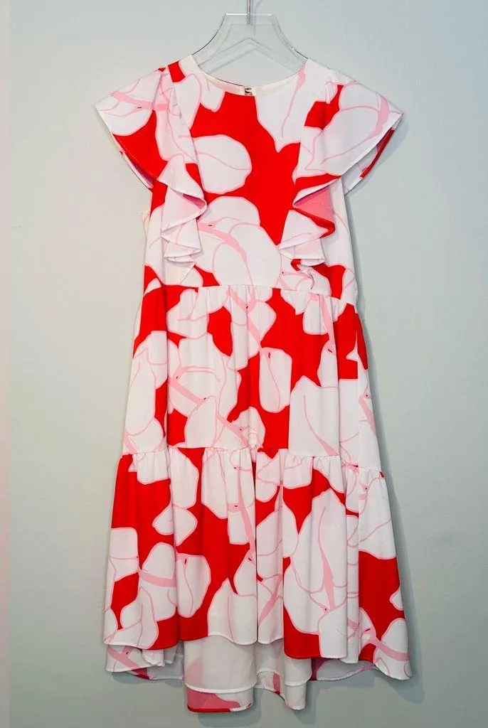 Crosby By Mollie Burch Floral Tiered Red White Pink Ruffle Dress. A fun, flirty dress with a big f... Show more