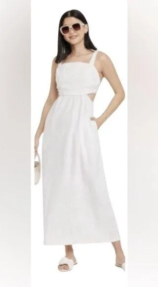 Elegant white backless dress by A New Day. Features a sleek design with a flattering fit. Perfect fo... Show more