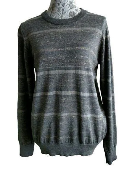 M.i.h Jeans Falls Striped Glittered Merino Wool-blend Sweater - Size M - New without Tags (NWOT) Charcoal grey, silver, and gold striped glittered merino wool-blend. Ribbed trim. Designed for a loose fit. Mid-weight knit. Slips on over head. Crewneck. Long sleeves. Colors: CHG (charcoal gray, silver, and gold) Style: K2003256 Materials: 88% merino wool, 12% lurex Machine wash cold No stains, holes, or other damage ▪️ Professional 5 star seller ▪️ Fast shipping – ship same/next day ▪️ Offers welcome ▪️ Bundle and save