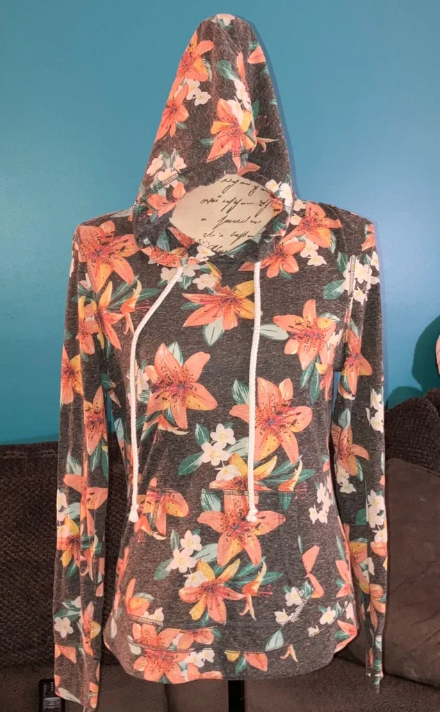 S937: Aeropostale Women's Tigerlily Popover Hoodie Size Large Gunmetal Lightweight Kangaroo pocket... Show more