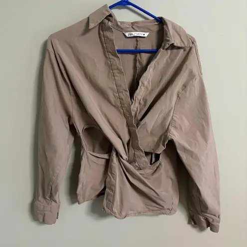 Zara Cut Out Knotted Shirt Taupe Size Small Top Twist Front Minimalist Tan - $29 - From Ashlee