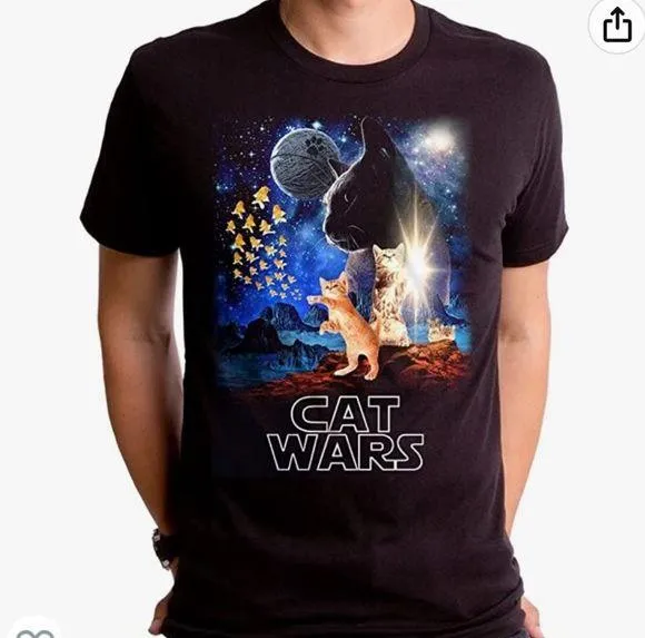 Goodie Two Sleeves Humor Cat Wars Graphic Short Sleeve T-Shirt. Size medium. Black overall color wit... Show more