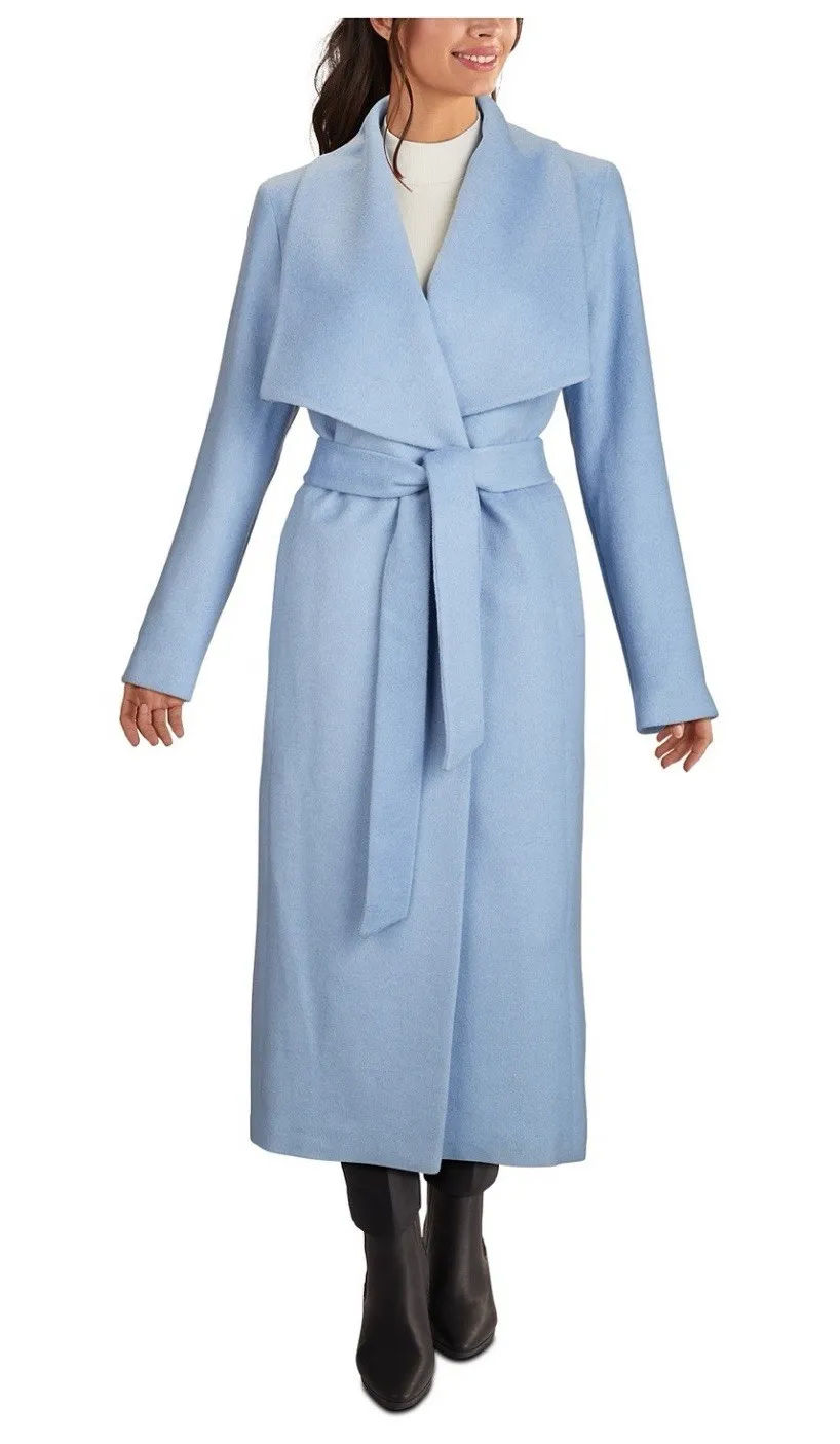 $460 Cole Haan Sz 10 Slick Premium Wool Blend Belted Wrap Trench Coat Ice Blue - $150 New With Tags - From Jo Anna