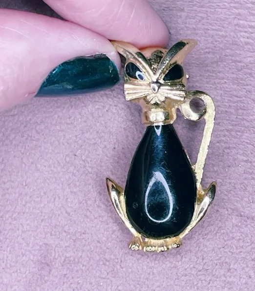 467. Vintage Black and Goldtone Jell Belly Cat Animal Pet Brooch - $15 - From Sara