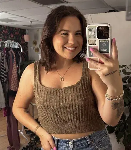 Saylor Ribbed knit Scoop Neck Crop Top Olive Size Large Green - $56 - From Lily
