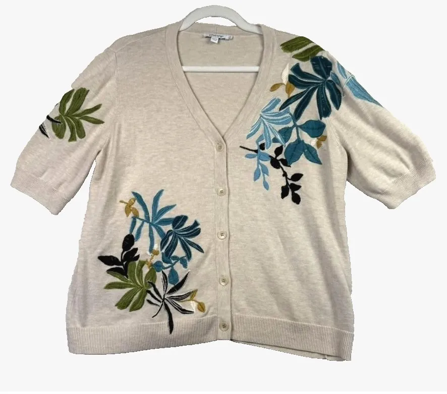 Brand: Chico's Style: Womens cardigan sweater Tag size: 3 (equivalent to Womens XL) Color: Beige/... Show more