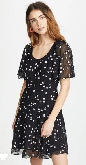 Rebecca Taylor Alessandra Dress Size 2 Black Allover floral print Scooped shirred band collar Short... Show more