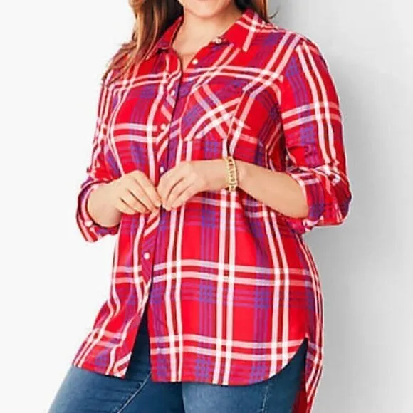 - Talbots - id4976 - size small - button down shirt blouse top - red / white / blue / multi multicol... Show more