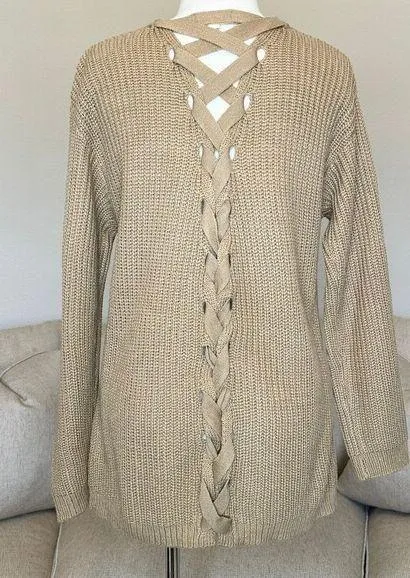 ALTAR'D STATE Women's Cable Knit Sweater Ribbon Criss Cross Back Lace Up Boho ~ Excellent Condition... Show more