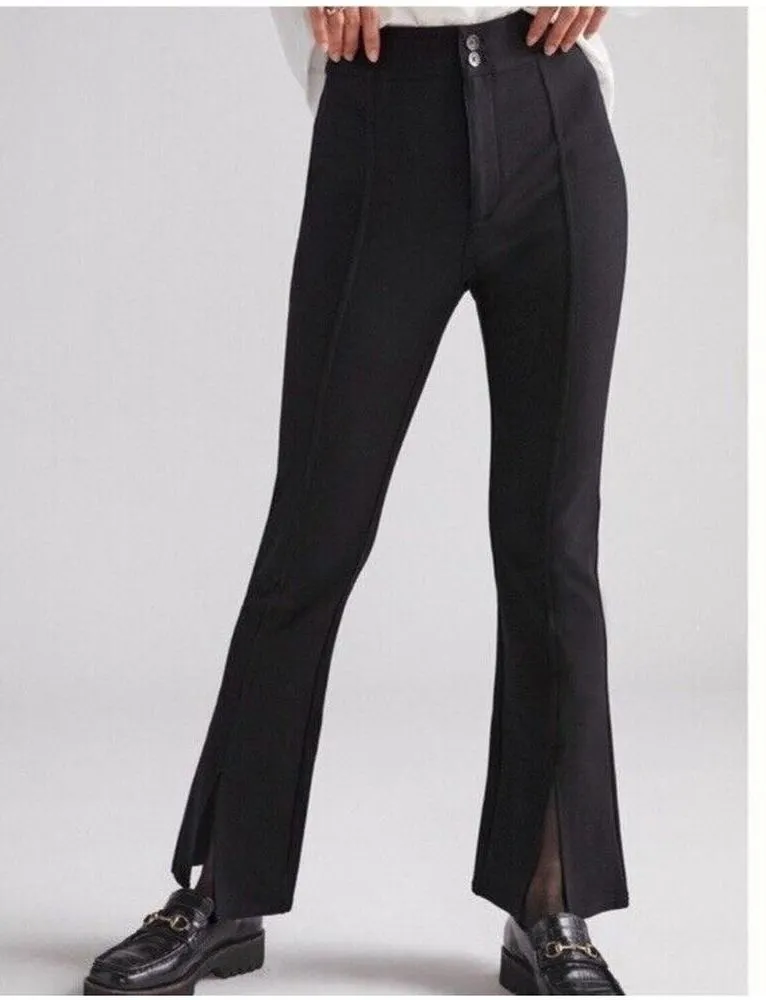 Maeve by Anthropologie Slit Split Front Flare Leg Ponte Pants Solid Black Stretch High Rise Waisted... Show more