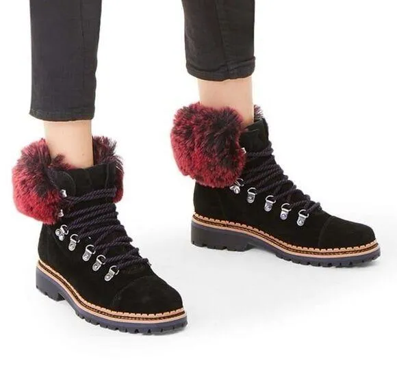 Sam Edelman Women's Bowen Black Leat her Raspberry Wine Faux Fur Boots in excellent condition. Pract... Show more