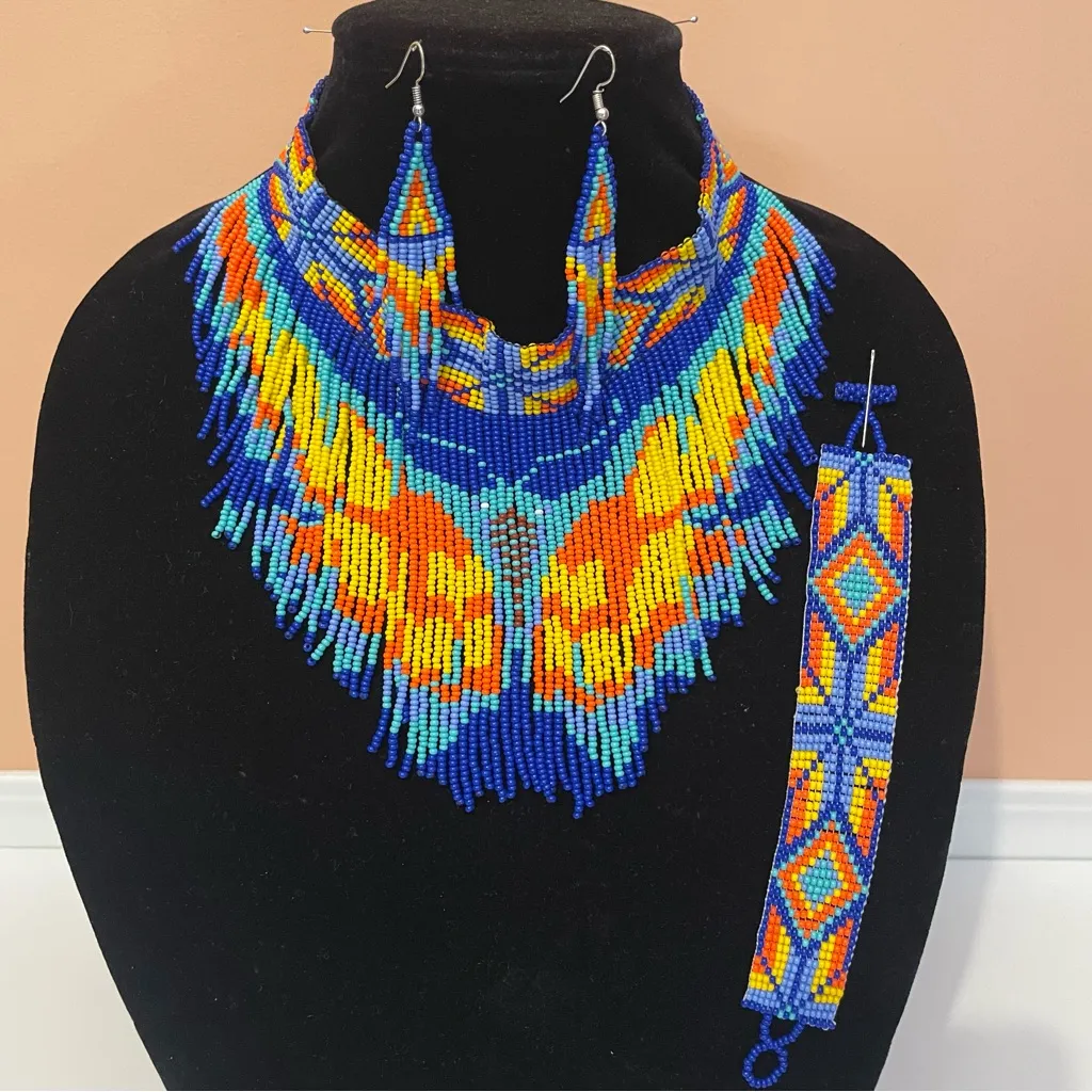Vibrant Blue and Yellow butterfly Beaded Necklace with bracelet & earrings Set - $70 - From Maricela