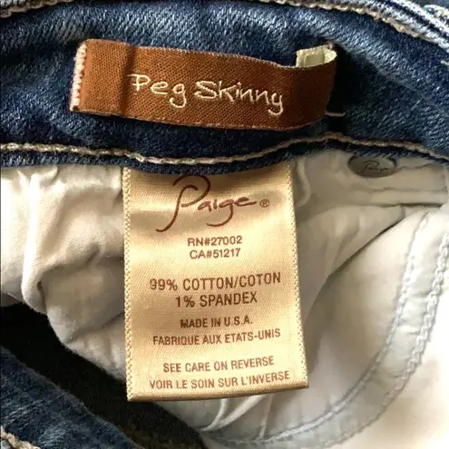 Women’s Paige Jeans size 26. Peg skinny cut with distressing and medium wash denim blue color. Bund... Show more
