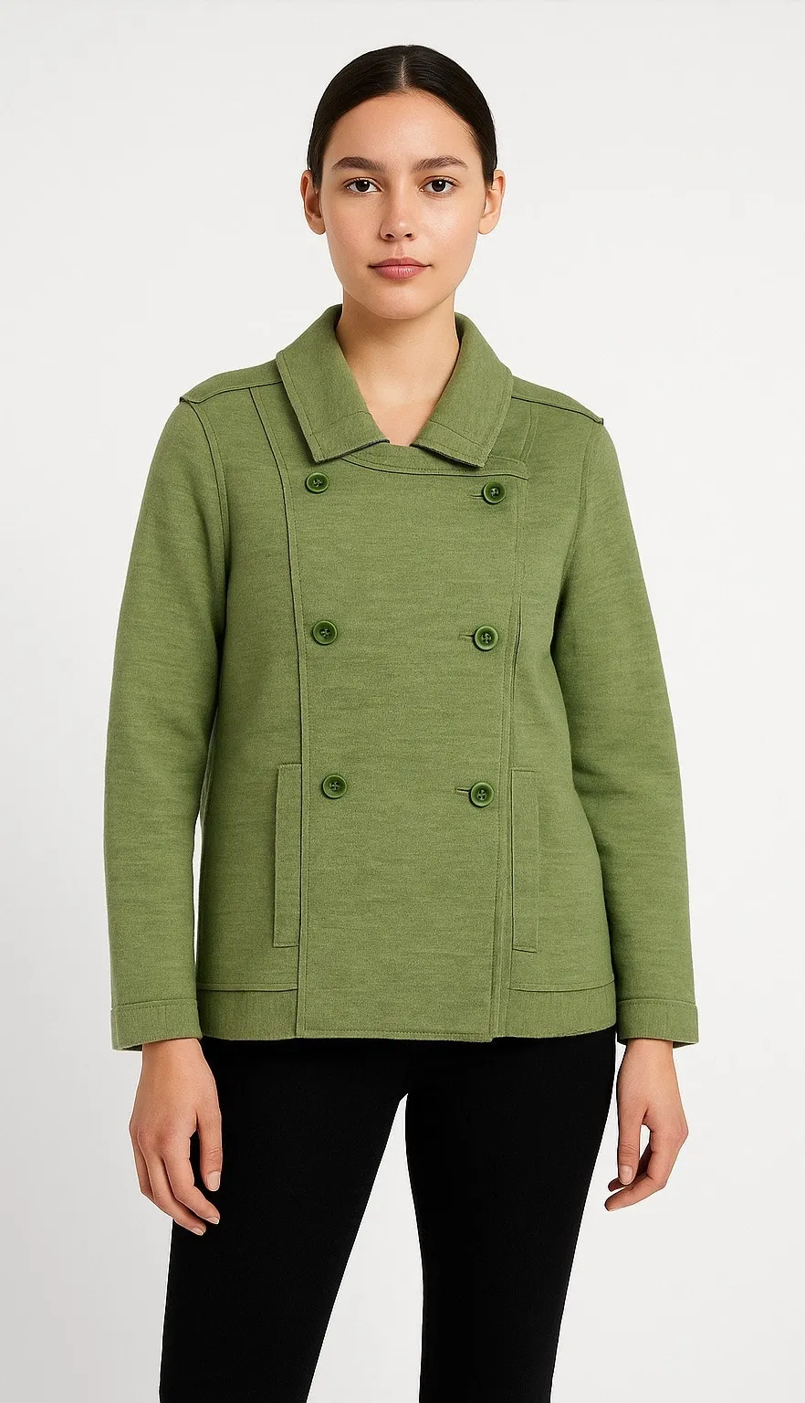 Eileen Fisher Petite Merino Wool Double-Breasted Peacoat Sweater Jacket medium P Green Size undefined - $100 - From Sinead