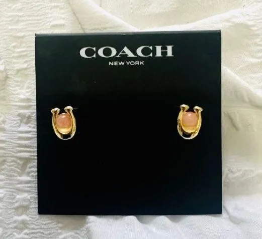 These Coach earrings are new with tags and feature rose quartz stones set in gold plated studs. The... Show more