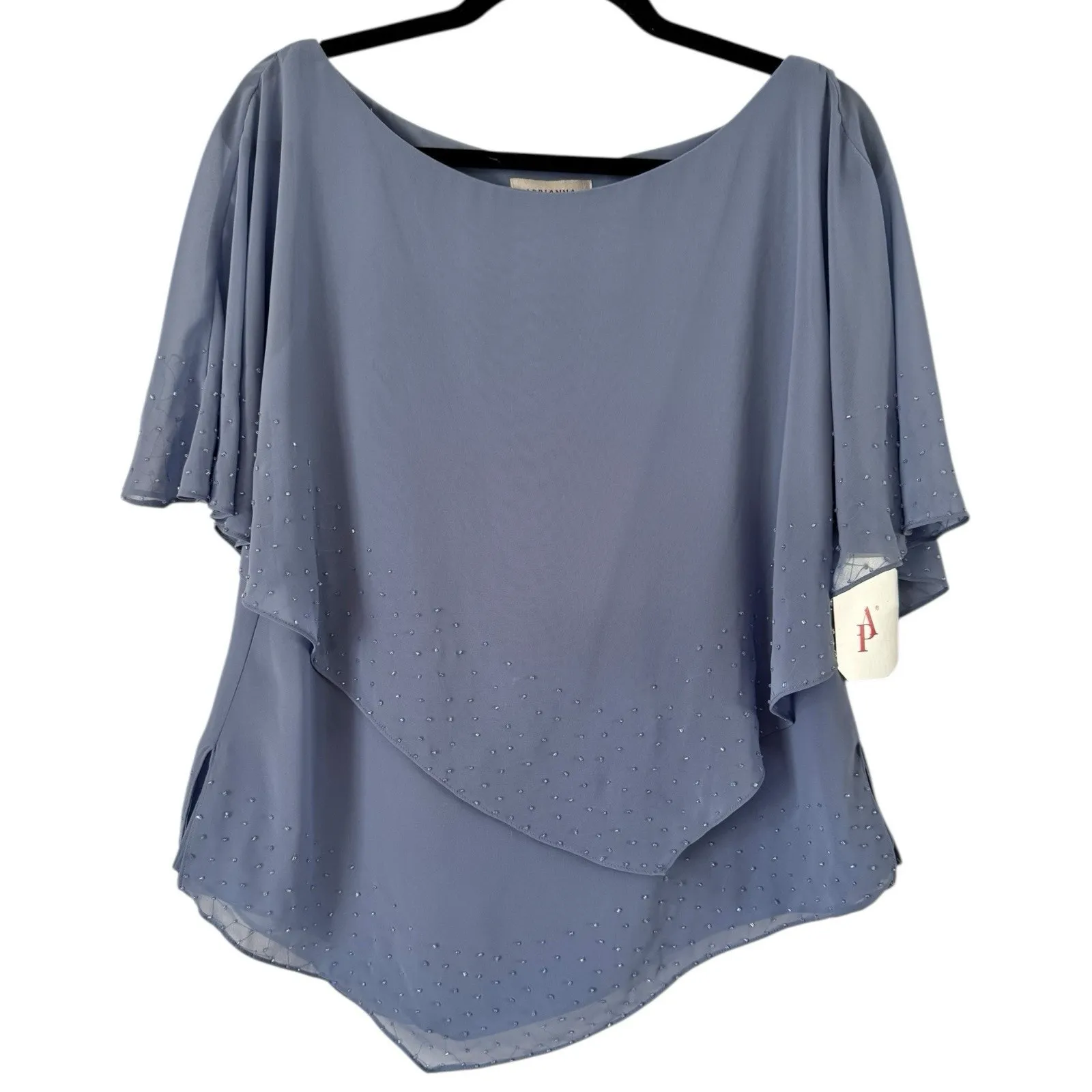 NWT Adrianna Papell Blue Beaded Tiered Formal Blouse. Pullover style with lightweight sheer tiered c... Show more