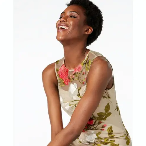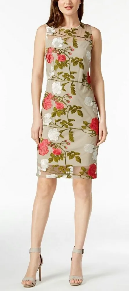 Sheer beauty: Flowering vines embroider a Calvin Klein dress elevated by peekaboo illusion yoke. Co... Show more
