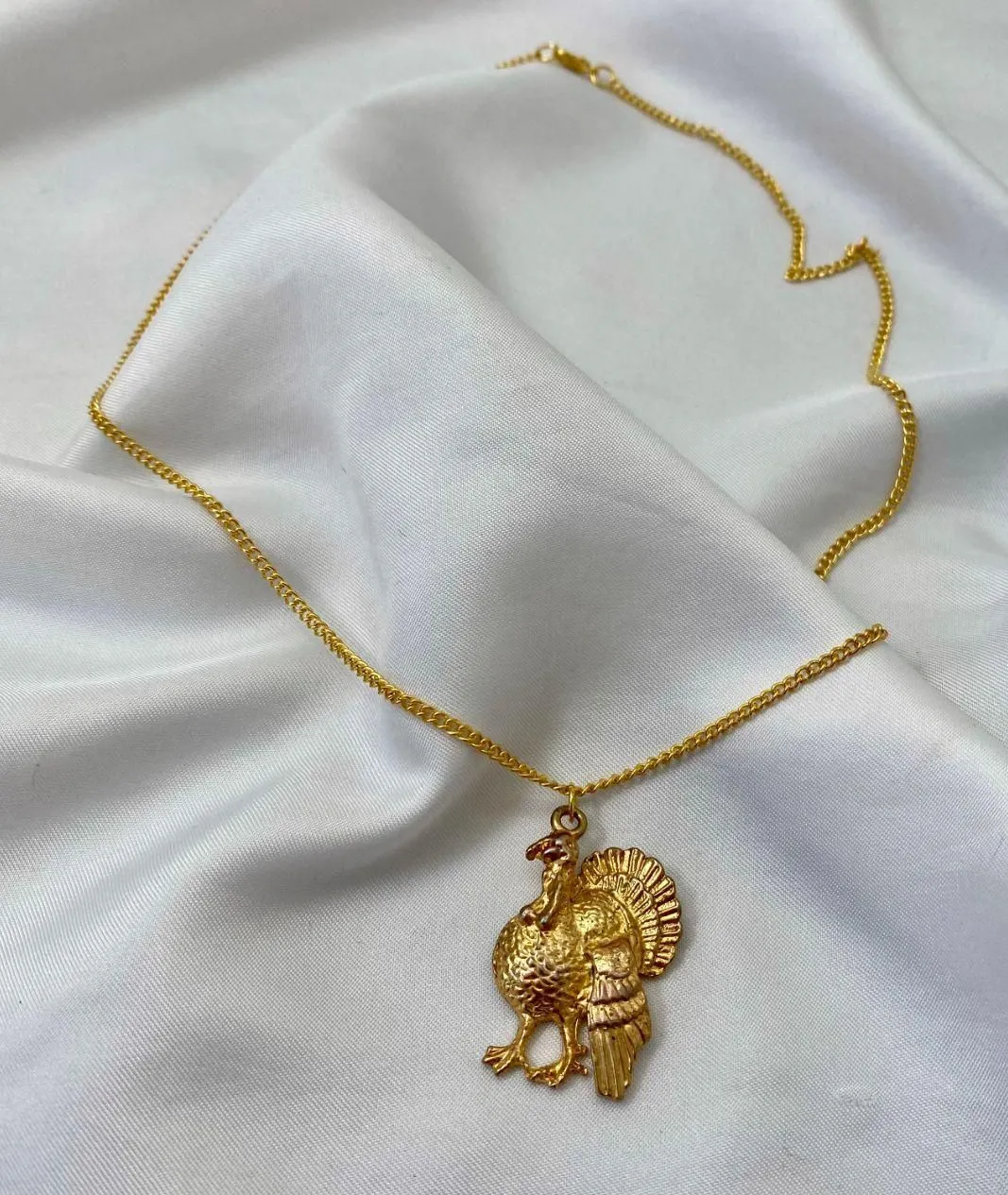 ✨ VTG Dainty Gold Turkey Pendant Necklace ✨ ༓ vintage gold toned large turkey pendant on new 20" necklace ༓ minimal signs of age on pendant ༓ such a cute bohemian vintage y2k piece Tags: #vintage #whimsical #turkey #coquette #boho