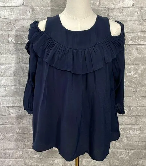 Maeve Brearly Cold Shoulder Ruffle Top Cold shoulder Long sleeve ruffle neckline Back keyhole butt... Show more