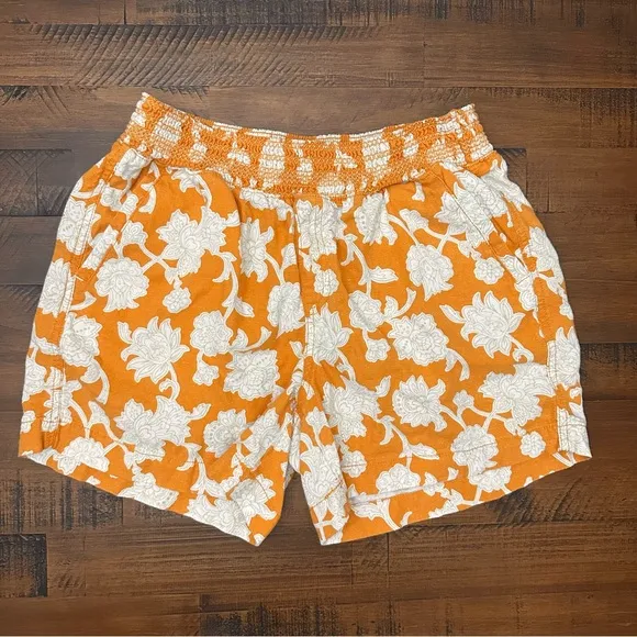 Briggs Women’s Linen Elastic Waist Yellow and White Floral Shorts features a lovely floral pattern in a gold color. These shorts have a comfortable elastic waist and a pull-on closure. They are made of machine-washable linen material and have a regular fit. The shorts have a 4.5-inch inseam and two slash pockets. They are perfect for any summer occasion, whether you're going out for a walk or meeting friends at a picnic. Great quality and so cute and comfy! Pair with a white top for a dressy outfit or dress down.