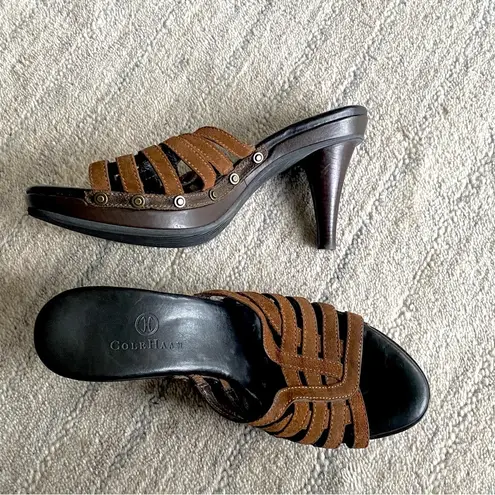 Clio Strappy brown suede heels Suede upper; Rubber sole; Leather lining Stacked wooden 3” heel Ligh... Show more