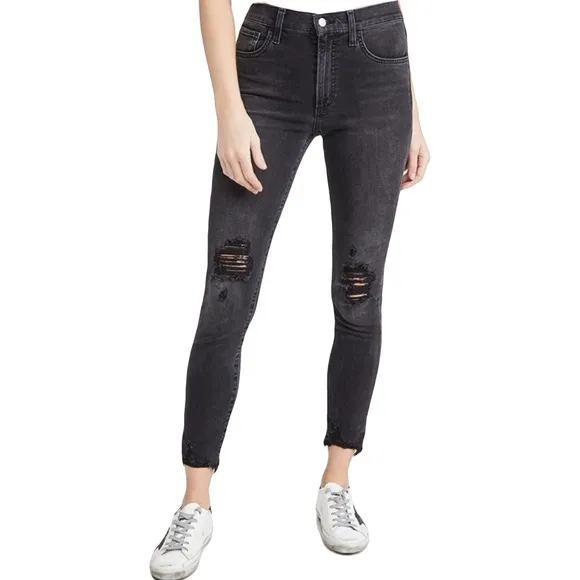 Joe's Jeans The Charlie High Rise Skinny Ankle Distressed Faded Black Denim Size 27 Excellent used... Show more