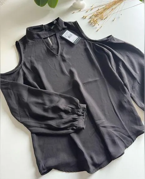 Adrianna Papell Womens Cold Shoulder Black Top New with tags on Size: M.