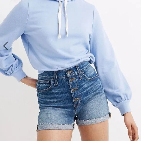 High-Rise Denim Shorts in Burke Wash: Button-Front Size 26 With a superflattering (and just a bit... Show more