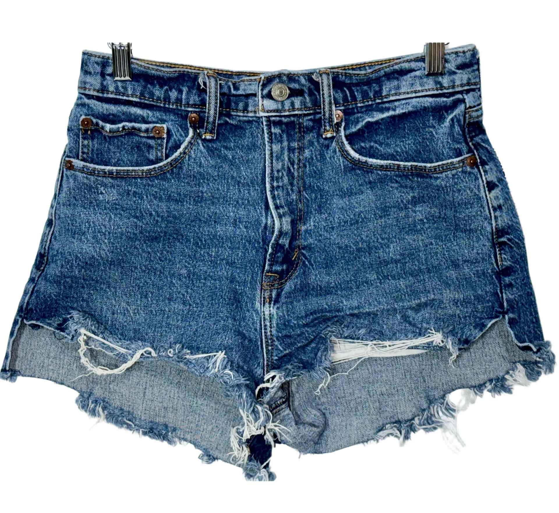 NEW NWOT Abercrombie & Fitch Curve Love The Mom Short High Rise Blue Denim Light Wash Cotton Distres... Show more