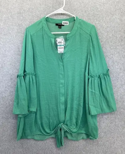 Alfani Women's Blouse Bell Sleeve Tie Front VNeck Plus Size 0X Green - $32 New With Tags - From Plush