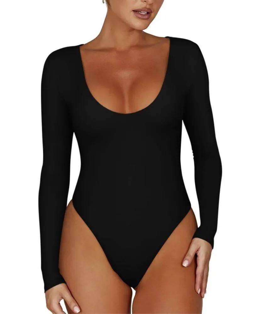 NEW Scoop Neck Long Sleeve Double Lined Stretchy Bodysuits XL 🌸 Fabric:75%Polyester +25%Spandex,so breathable,lightweight and great soft with tons of stretch, so smooth fits like a buttery glove.Note:Hand wash/Machine wash in laundry bag/Color separated washing/ Do Not Bleach.Keep bodysuits for women flattering! Hand Wash Only 🌸 Double lined,not see through,can wear it without a bra.This leotards for women sewed with high elasticity precision stitching alongwith neckline and hem,make it more delicate and durable,great staple for your daily life. 🌸 This snatched body suit with sexy low cut scoop neck give the illusion of a longer neck and accentuating your collarbone and cleavage,suits bigger busts and is quite chic and feminine, perfect sexy bodysuits for women going out. 🌸 M--bust--30.3” 🌸 Long sleeve bodysuit for women with 2 snap buttons closure at crotch,convenient and allows for easy on-and-off.
