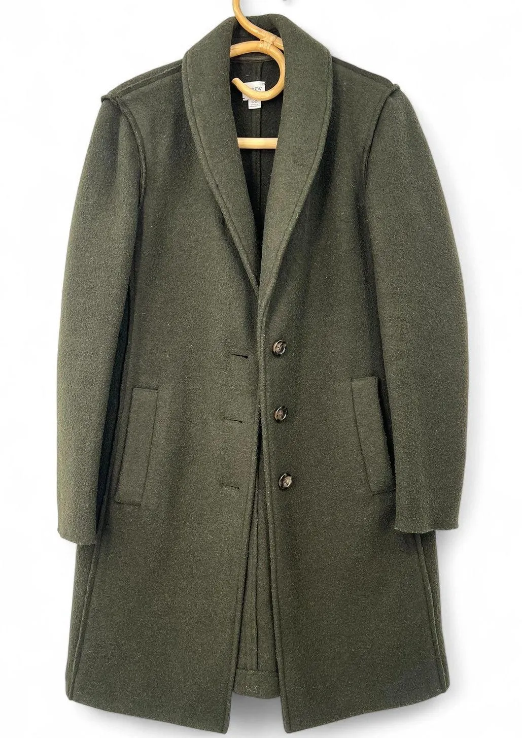"Daphne Boiled Wool Topcoat" or a similar J.Crew model in green. Approx. measurements laying flat: 3... Show more