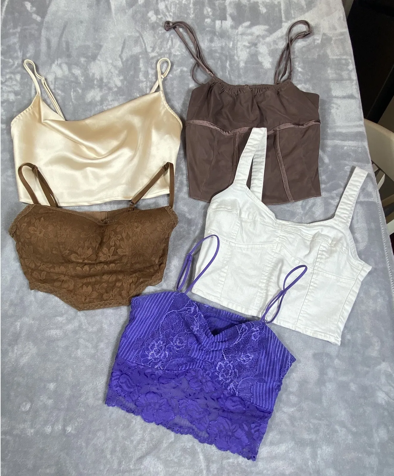 The product is a set of five junior/ women's cropped tank tops in baby doll style, perfect for a rom... Show more