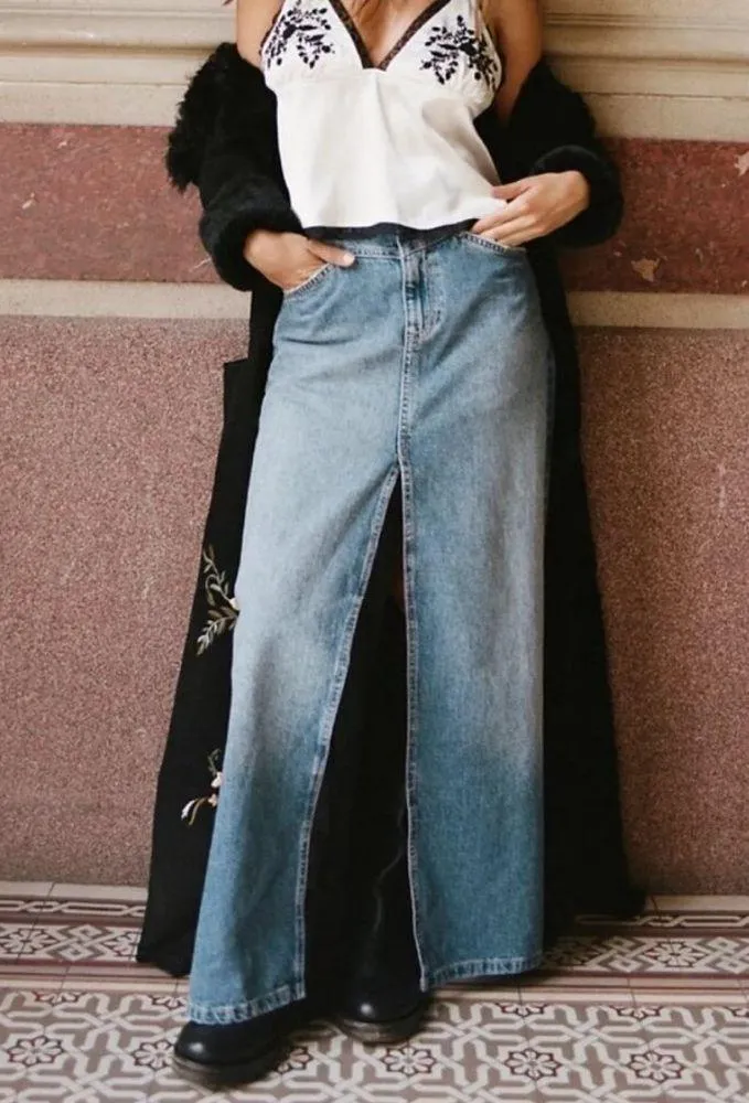 NWT Free People Come As You Are Denim Maxi Skirt Size: 4 Color: Sapphire Blue With Slit Forever... Show more