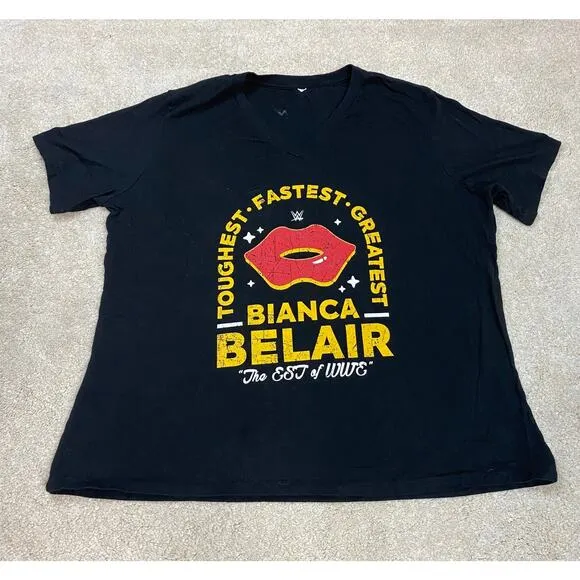 Slim fit v-neck tee with graphic on front. I cut out the size tag but it is a 2XL. I bought to wear to Wrestlemania but it was too cold to wear, so it's in great condition. Approximate flat measurements Pit to pit: 24" Length: 27"