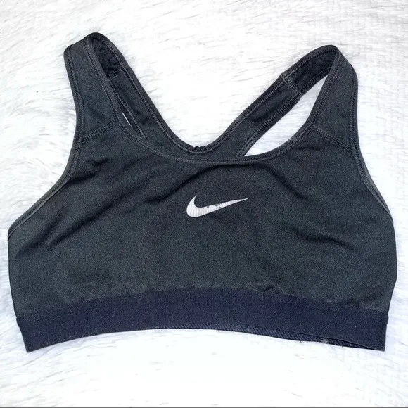 Women’s NIKE Dri-Fit Solid Black Sports Bra. Size Small. Swoosh logo on the front. Pre-owned conditi... Show more