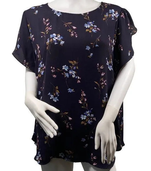 Premise Woman Flutter Sleeve Floral Blouse – Size 2X – Navy Blue, Lightweight, Excellent Condition... Show more