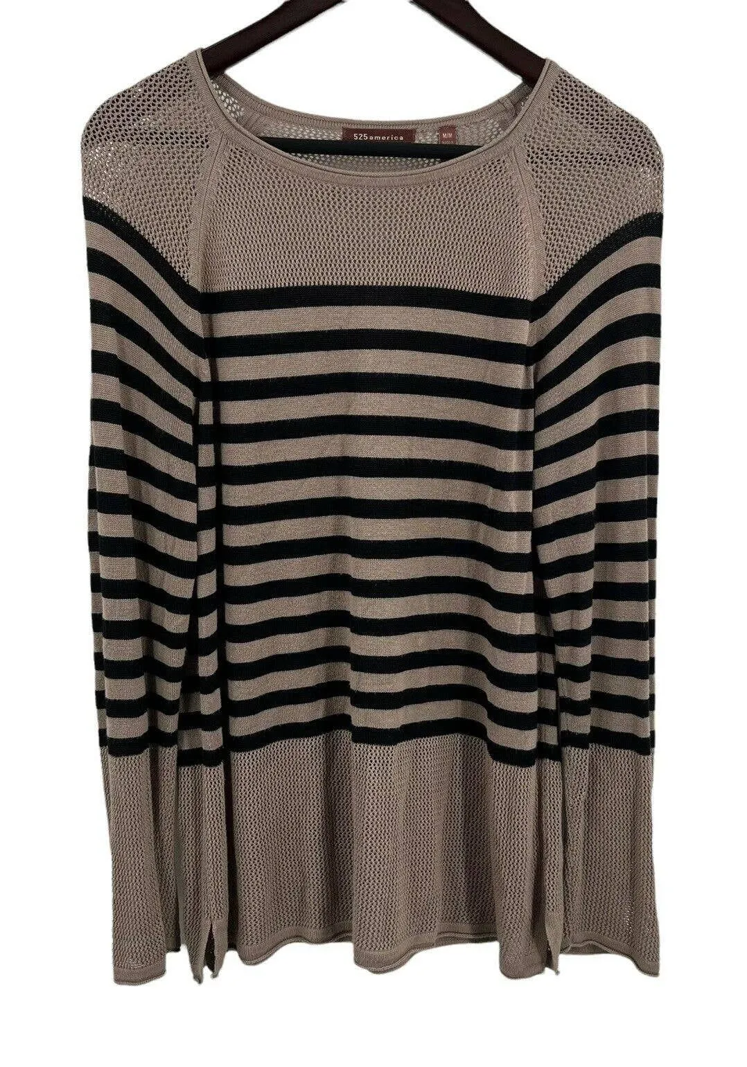 525 America Womens Taupe Black Open Knit Long Sleeve Pullover Top Size Medium. Round neck Partial o... Show more