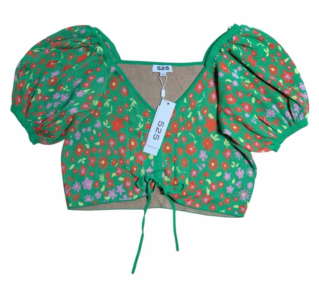New With Tags 525 •Garden Multi Print •Puff Sleeve •Stretchy Material •Tie Front Detail •Cropped •B... Show more