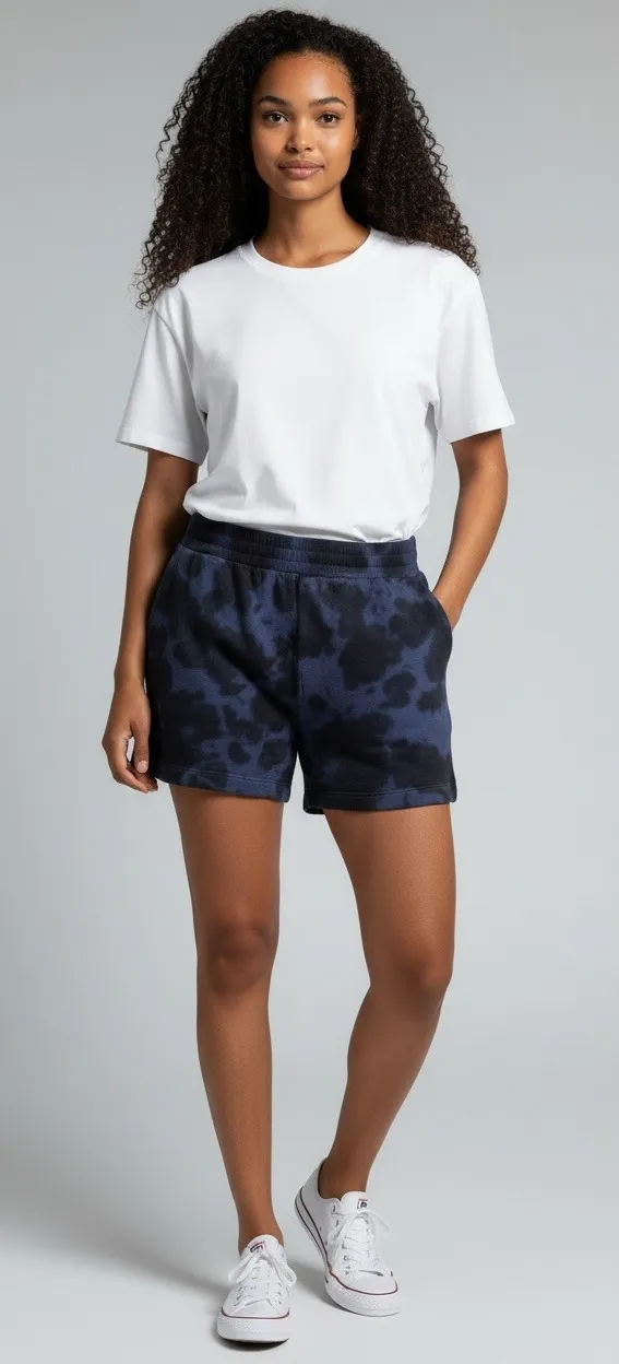 Discover ultimate comfort and effortless style with these 525 Born in Bklyn sweat shorts. The captivating indigo multi tie-dye pattern adds a touch of unique artistry to your casual wardrobe, making each pair distinctly yours. Designed for relaxed days and laid-back vibes, these shorts feature a comfortable waistband and practical pockets, perfect for lounging at home, running errands, or enjoying a casual day out. Measurements: • Waist: 13 in • Inseam: 2.5 in • Rise: 11 in Department: Women Style: Sweat Theme: Colorful Material: Polyester Blend Fabric Type: Knit Features: Pockets, Elastic Waist Pattern: Batik Occasion: Casual, Activewear Season: Summer, Spring Country of Origin: China Keywords: tie dye, sweatshorts, loungewear, casual shorts, summer shorts, athleisure, comfortable, stylish, relaxed fit, boho, unique pattern, daywear