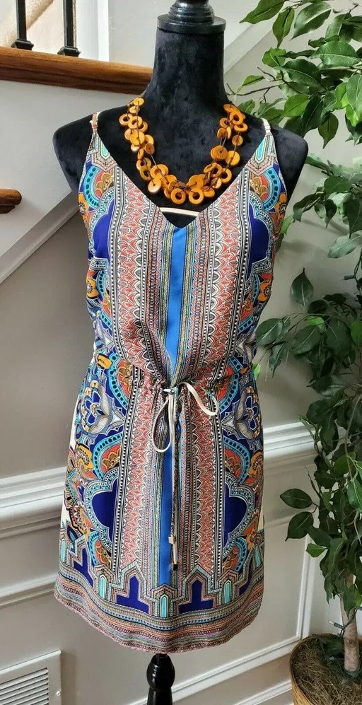 5|48 Women's Multicolor 100% Polyester V-Neck Strappy Knee Length Dress Size S Product Detail • Br... Show more