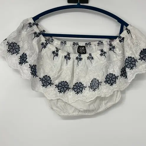 LF BRAND ONE WAY WHITE & BLUE WITH EMBROIDERED FLORAL DESIGN CROPPED TOP SIZE 8 NEW WITHOUT TAGS -T... Show more