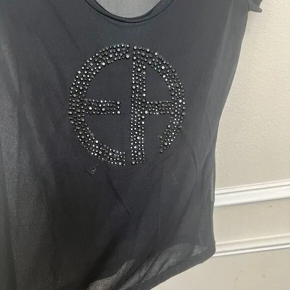 The new one has no tag, please see the last picture, It looks like a snag, but there is no hole.Bust 31 inches, length 22.5 inches Very small size,The front of the top has double layers and is not see-through. The back of the top has a single layer and is slightly see-through.