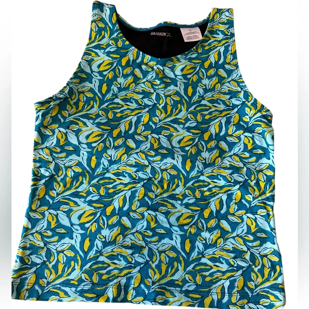 Danskin Women’s Blue & Yellow Built in bra Workout Top Size Large Excellent condition