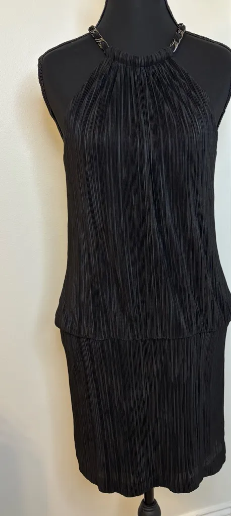 Laundry by Shelli Segal Little Black Dress Pleated Halter blousan midi dress with clasp behind neck... Show more