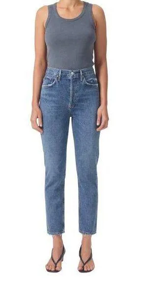 Size 27 from Agolde. Style name Riley. High rise straight crop denim jeans in colorway wash Frequenc... Show more