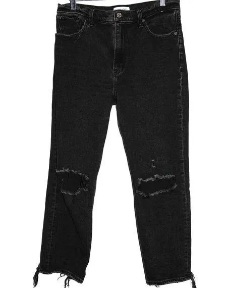 Women's Abercrombie & Fitch The Mom High Rise Black Denim Medium Wash Cotton Elastane Pull On Zip Up... Show more