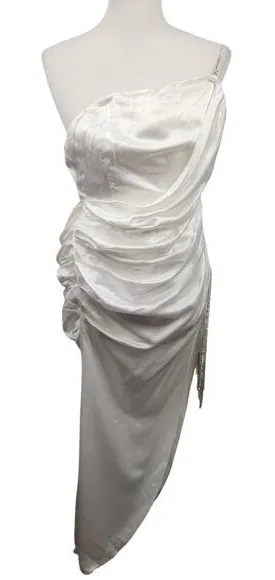 Retrofete White Strapless Asymmetrical Rhinestone Dress Size XS There is no size or fabric tag Feel... Show more