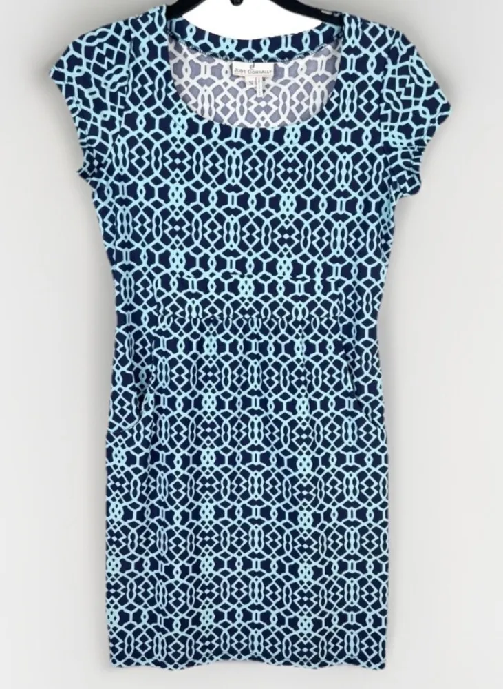 Jude Connally Blue Geometric Pattern Shift Dress Short Sleeves Dress Small Add a pop of style to... Show more