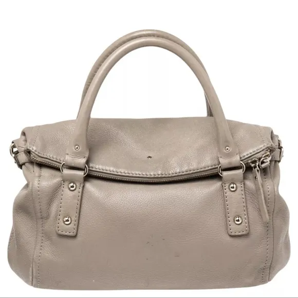 Elegant cream leather handbag. Features sturdy handles and silver-tone hardware. Perfect for everyda... Show more